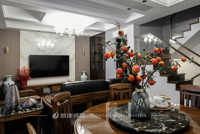 案例風(fēng)格:新中式/案例戶型:排屋/戶型面積:270.00㎡