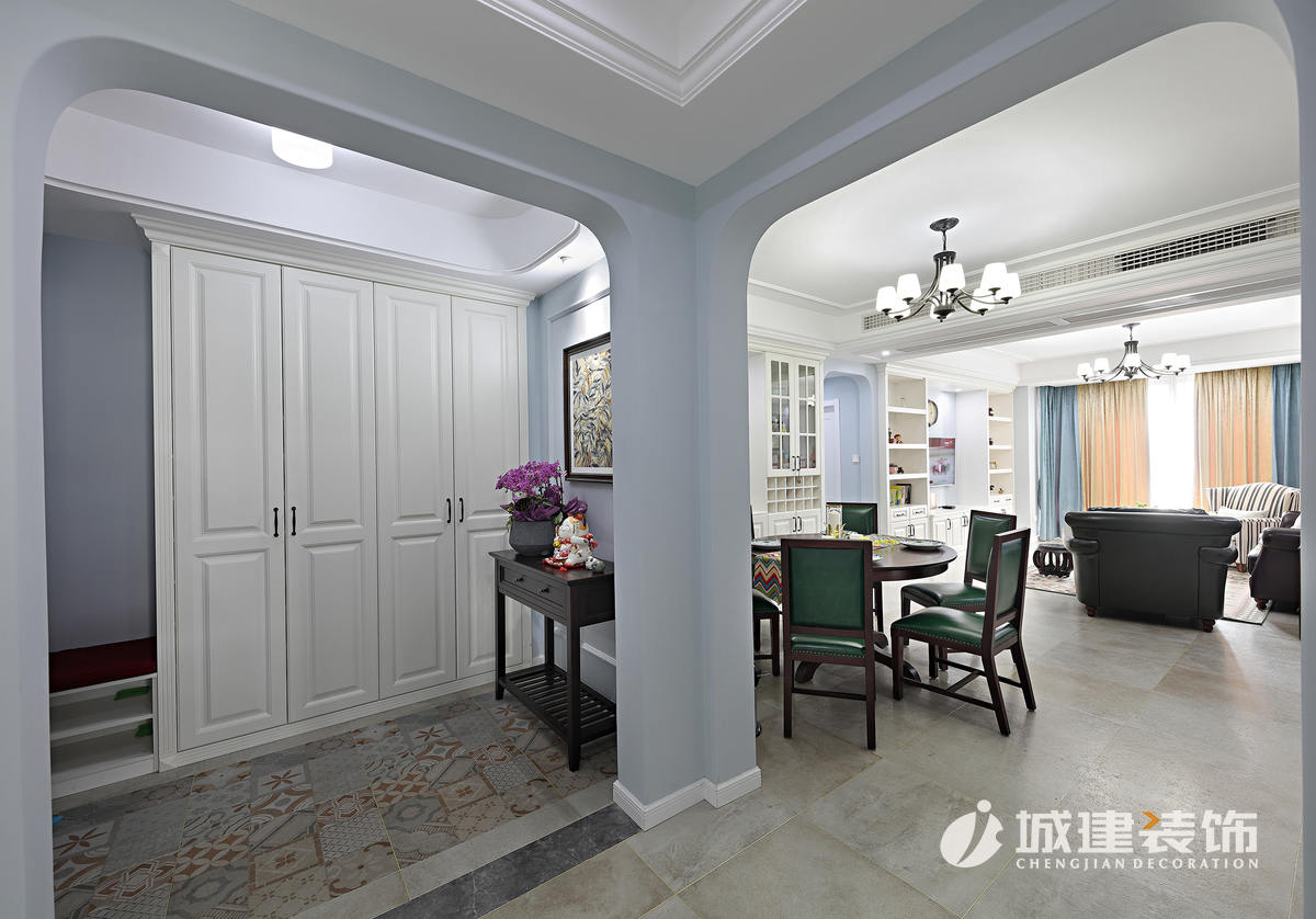 玄關(guān)處使用了一體門,為了方便換鞋,添加了一個(gè)連體換鞋凳。餐廳做了一個(gè)大酒柜,凹字形,上半部分左右兩邊是透明的玻璃柜,中間是井字形酒架,下面是儲(chǔ)物柜。本來中間的臺(tái)面預(yù)備做一個(gè)西餐臺(tái),但是考慮到添加水管和污水流向流速的問題,放棄了這個(gè)念頭。