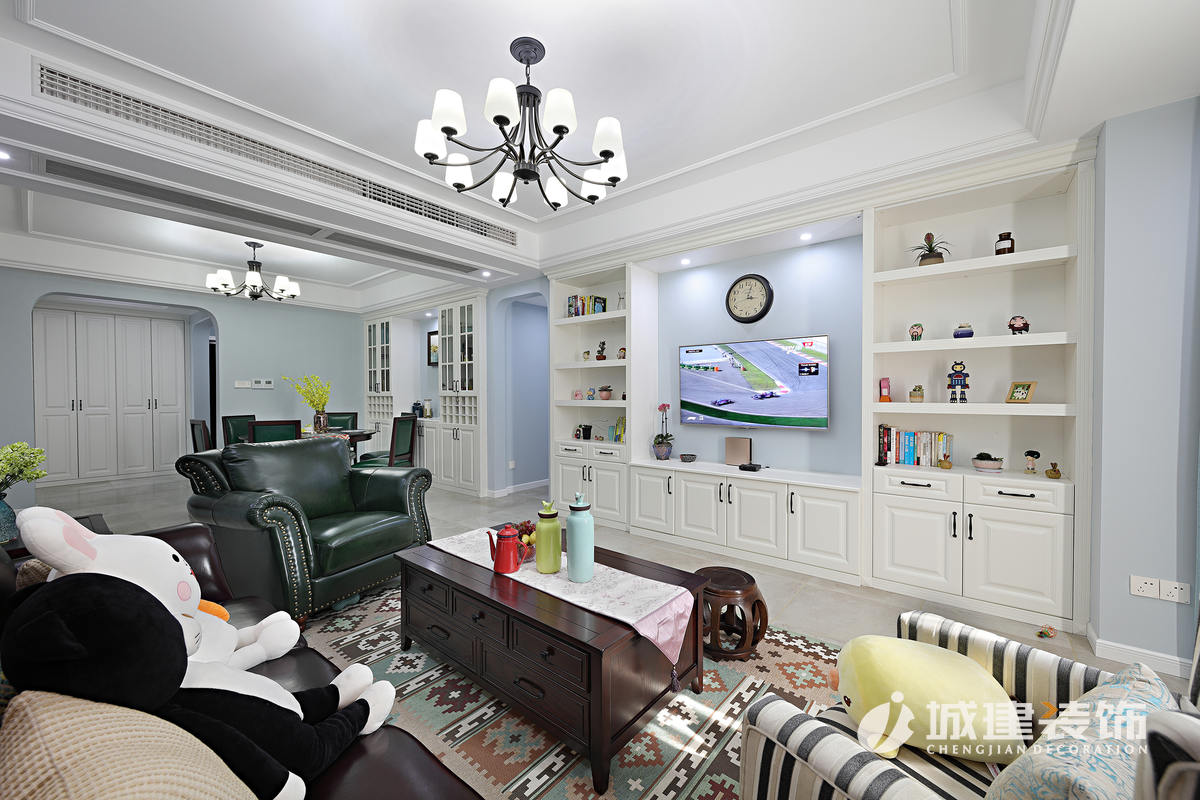 客廳的電視機(jī)柜也采用了凹字形,兩邊是裝飾柜,下面是儲(chǔ)物柜??蛷d沙發(fā)購買了3+1+1,再加兩個(gè)小矮凳,一個(gè)角幾,一個(gè)茶幾。落地窗邊若配上一方小茶幾和幾把矮凳,不失為賞花賞月品茶的好去處。