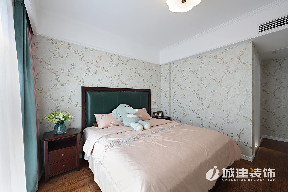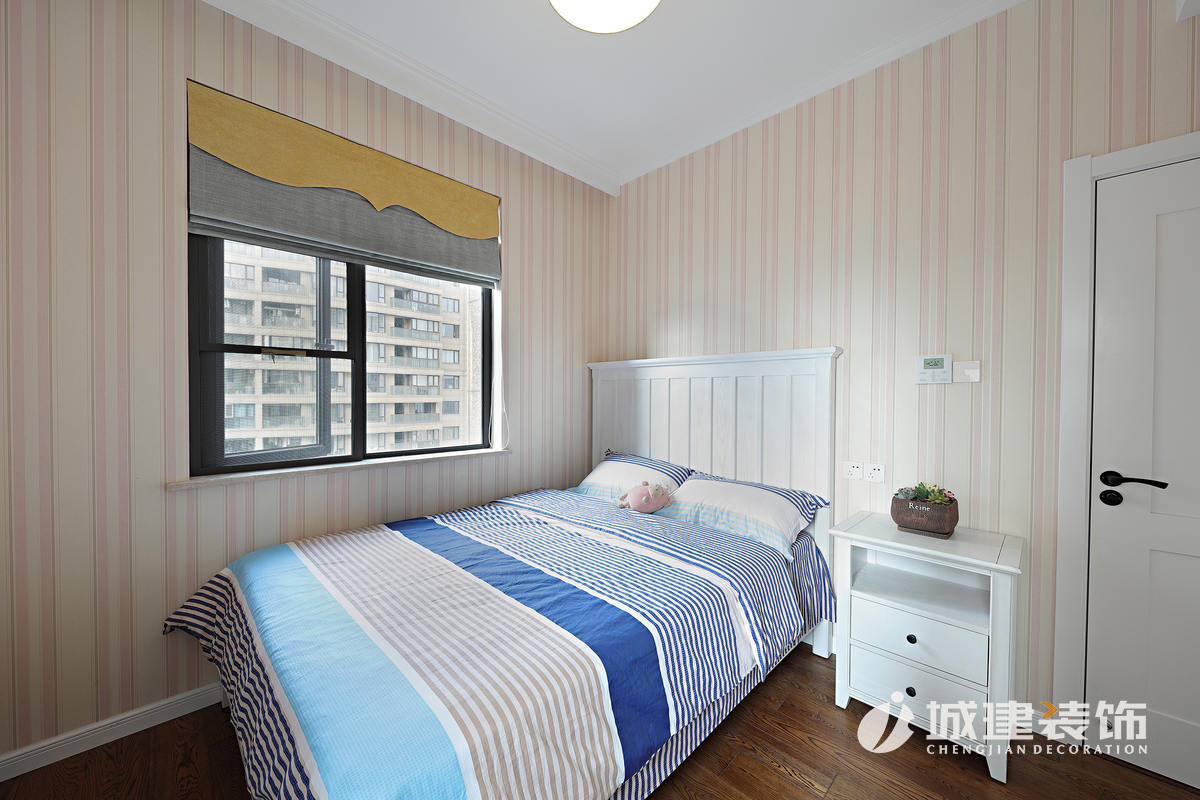 主臥里,將電視機(jī)柜作成了衣柜,用來放置日常衣物。次臥連著一個(gè)小陽臺(tái),作為父母用房。