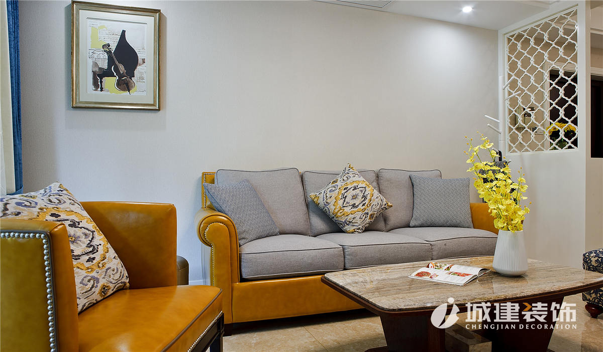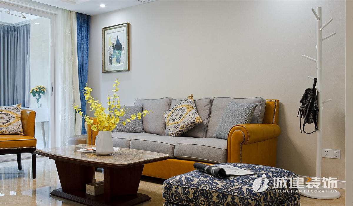 沙發(fā)選擇了琵琶黃,它不像檸檬黃那樣挑眼,更低調(diào)氣質(zhì)一點,很好的調(diào)和了整體空間的色彩平衡。