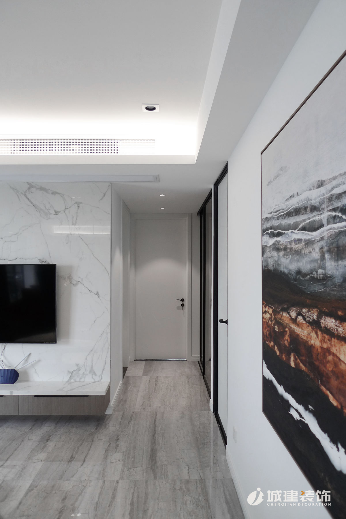 本案的設(shè)計(jì),前期和客戶溝通的時(shí)候,聊的比較多的是客戶的一個(gè)生活經(jīng)歷??蛻艚?jīng)常出差國(guó)外,生活節(jié)奏比較快,不太喜歡復(fù)雜繁瑣的東西,以極致簡(jiǎn)約為基礎(chǔ),突出品質(zhì)和設(shè)計(jì)感,在儲(chǔ)物空間的考慮上,這邊考慮一個(gè)公用的衣帽空間,還有一個(gè)大的儲(chǔ)物間,很好的滿足了家里儲(chǔ)物的需求!選擇木飾面 石材 絲絨 皮質(zhì) 不銹鋼以及玻璃的巧妙混搭與組合,打造出一個(gè)業(yè)主滿意的空間。