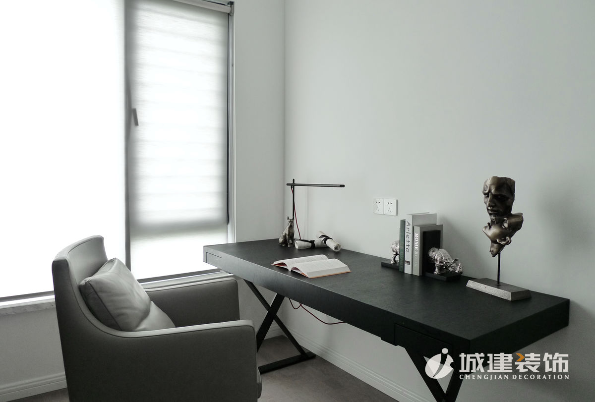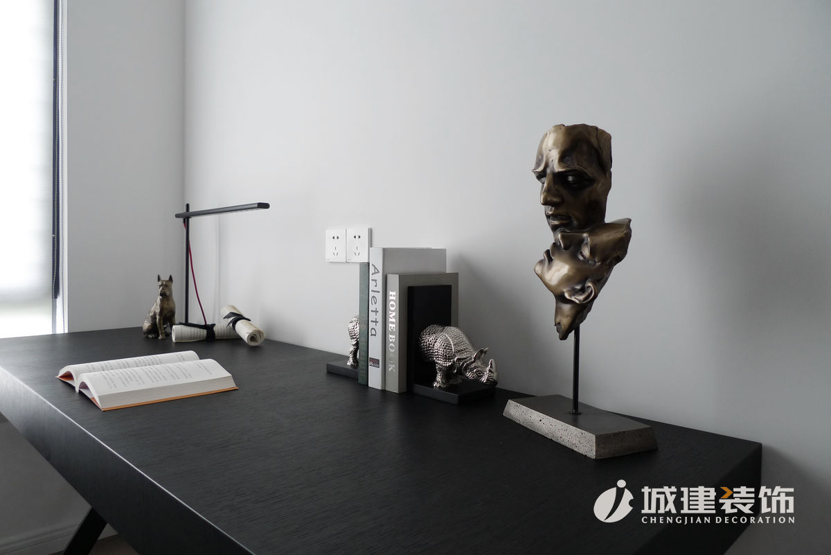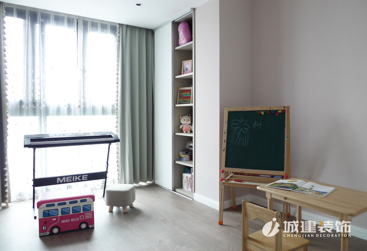 書房和次臥室的空間考慮了一個(gè)套房的設(shè)計(jì),考慮家庭實(shí)際情況,既滿足了書房的隱私性又能保證客餐廳的整體效果。另外原來戶型結(jié)構(gòu)有兩個(gè)陽臺(tái),在保證公共陽臺(tái)作為生活陽臺(tái)的情況下!盡可能大的把兒童房空間做大,讓兒童有個(gè)好的活動(dòng)空間。
