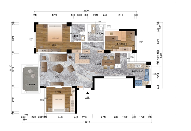 案例風(fēng)格:現(xiàn)代/案例戶型:三居室/戶型面積:130.00㎡