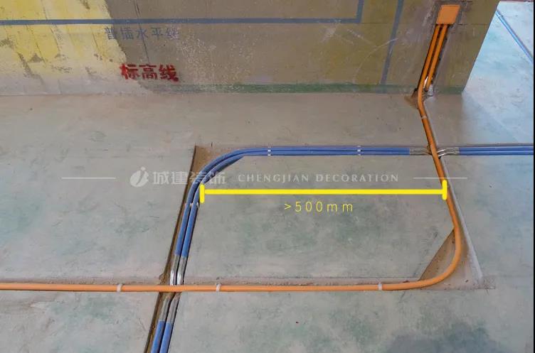 強(qiáng)弱電交叉工藝:強(qiáng)弱電盡量避免交叉,如確需交叉,必須使用過彎鐵管包裹弱電線管,避免干擾。