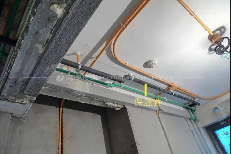 熱水管保護(hù)工藝:明裝熱水管用專用保溫套保護(hù),并用吊卡固定。
