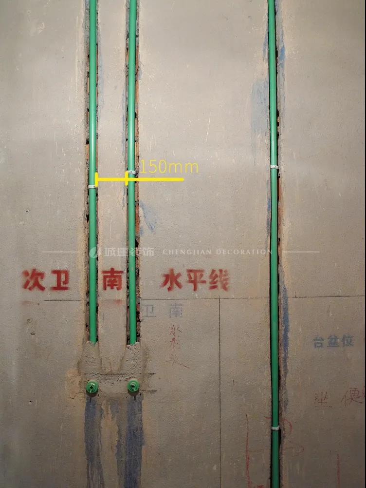 水管安裝工藝:冷、熱水管安裝應(yīng)左熱右冷,平行間距不小于150mm。