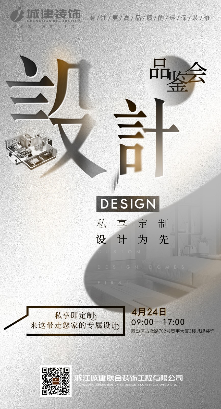 4月24日,來城建裝飾“設計品鑒會”,帶上您對新家的期待,和我們來一場設計風暴吧!