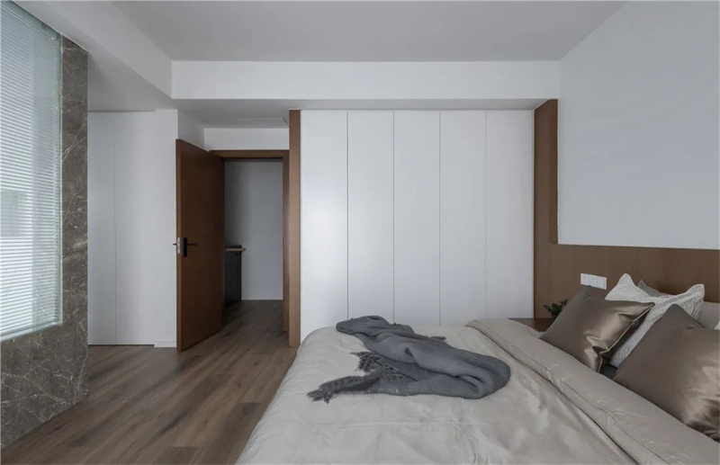 臥室也不再有一定需要床頭的概念,床頭可以演變成一面床頭背景墻,也可以和收納柜很好的結(jié)合,床頭柜與床一體,不僅充分利用每一寸空間,也讓整個臥室看起來更具高級感和整體感。