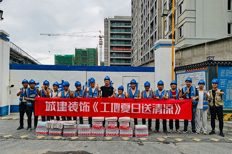 由城建裝飾總經(jīng)理張總帶隊,往返杭城各區(qū)在施工工地,為工人師傅送去清涼與慰問。
