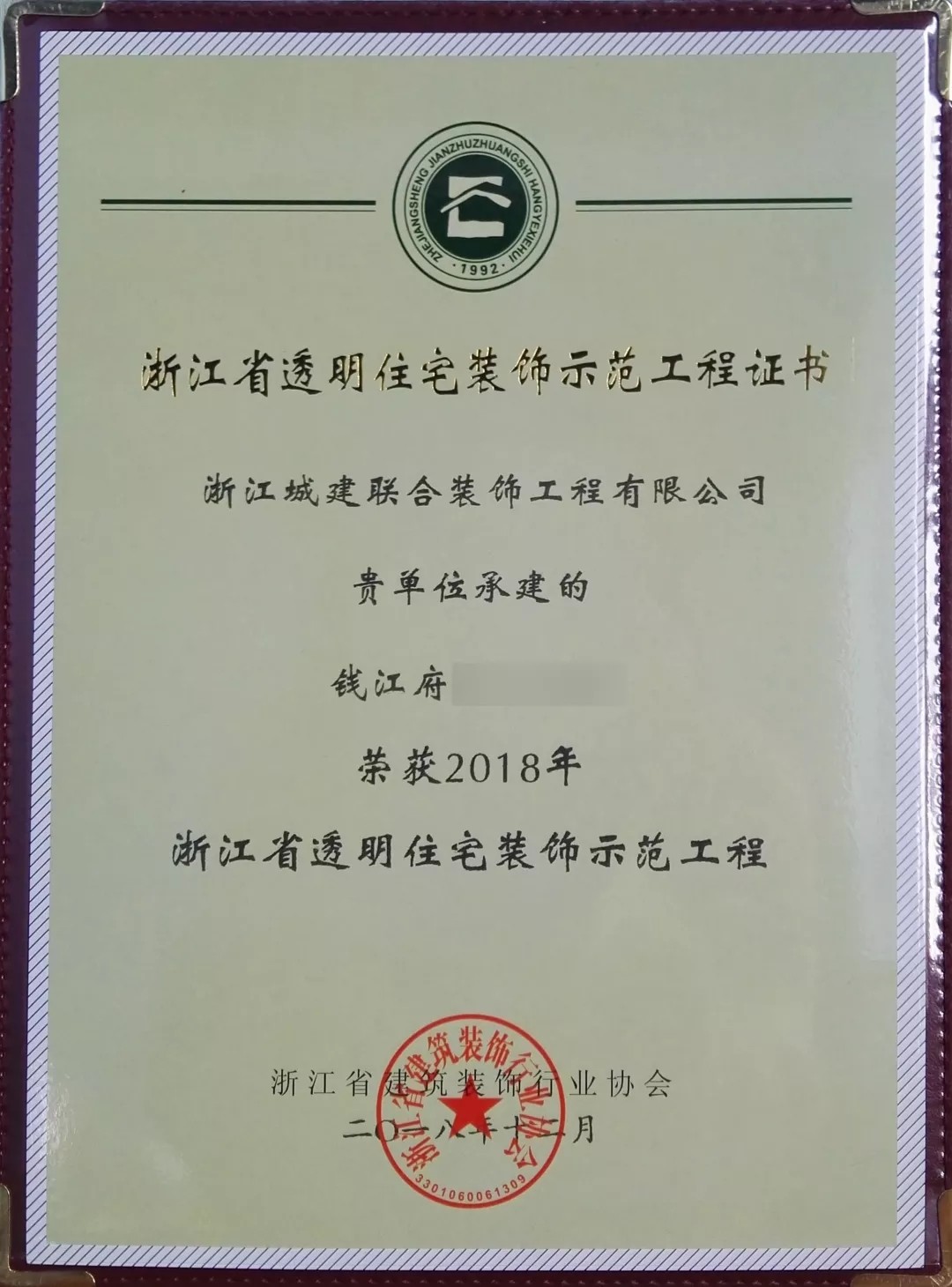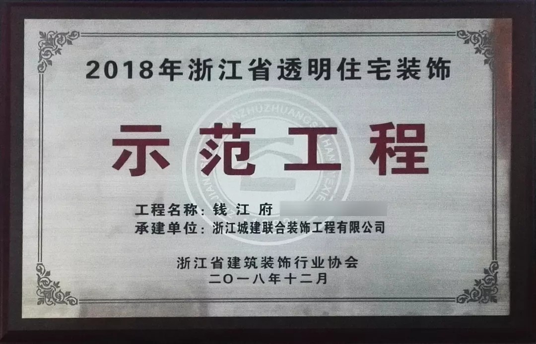 浙江省透明住宅裝飾示范工程獎(jiǎng)